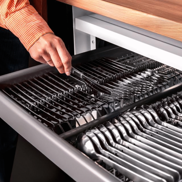 - Bandeja para Cubiertos: bandeja superior dedicada para cubiertos, de esta manera se obtendrán unos cubiertos más limpios y se ahorrará espacio en las otras bandejas inferiores.