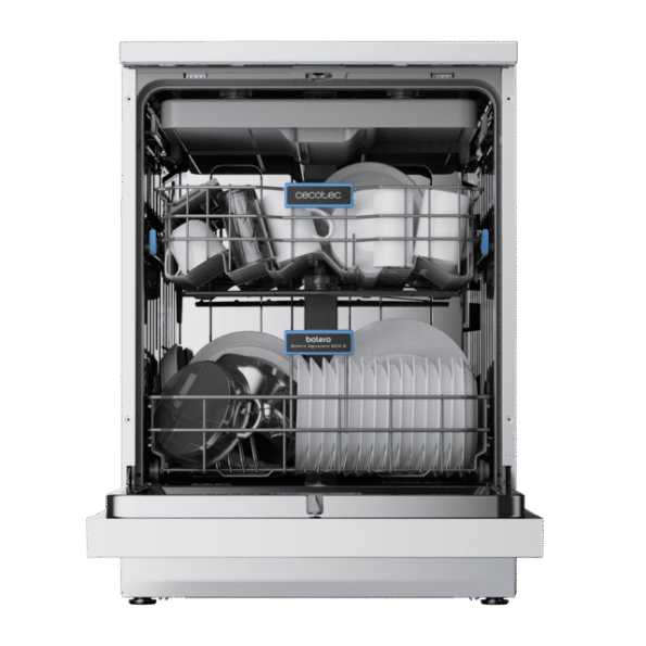 - Bandeja Ajustable: lava todo tipo de platos, cazuelas o copas, independientemente de su altura, gracias a la regulación de altura de la bandeja superior.