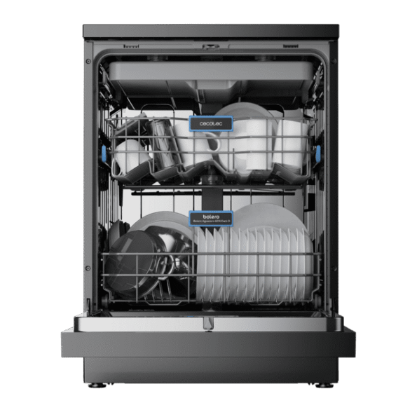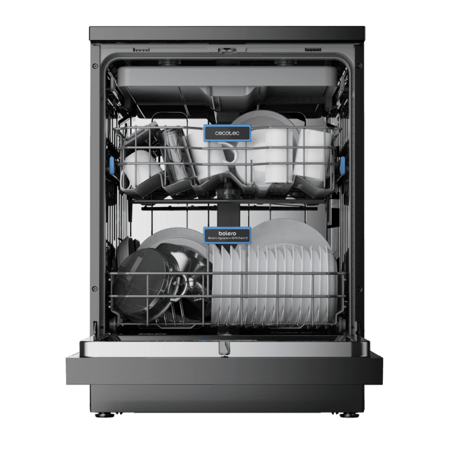 Bolero Aguazero 6210 Dark D Lavavajillas Bolero de 60cm dark, 15 cubiertos, Clase D, Pantalla FullColor XXL, Tercera bandeja,8 programas, Dual Zone Wash, Dry+, Bandeja Ajustable, Machine Care, Media Carga, Delay Start y Child Lock.