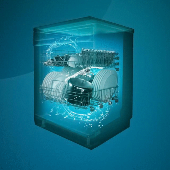 - Dual Zone Wash: adapta una presión de agua distinta en cada bandeja. Despreocúpate de separar la vajilla en distintos ciclos de lavado y lava a la vez ollas resistentes, copas delicadas, recipientes muy sucios, menos sucios…