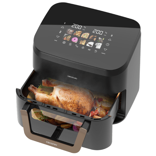 - Cocina con un solo toque. 10 menús: elige el ideal para cada momento y olvídate de preocupaciones, la Cecofry marcará el tiempo y temperatura de forma automática para conseguir el punto ideal.